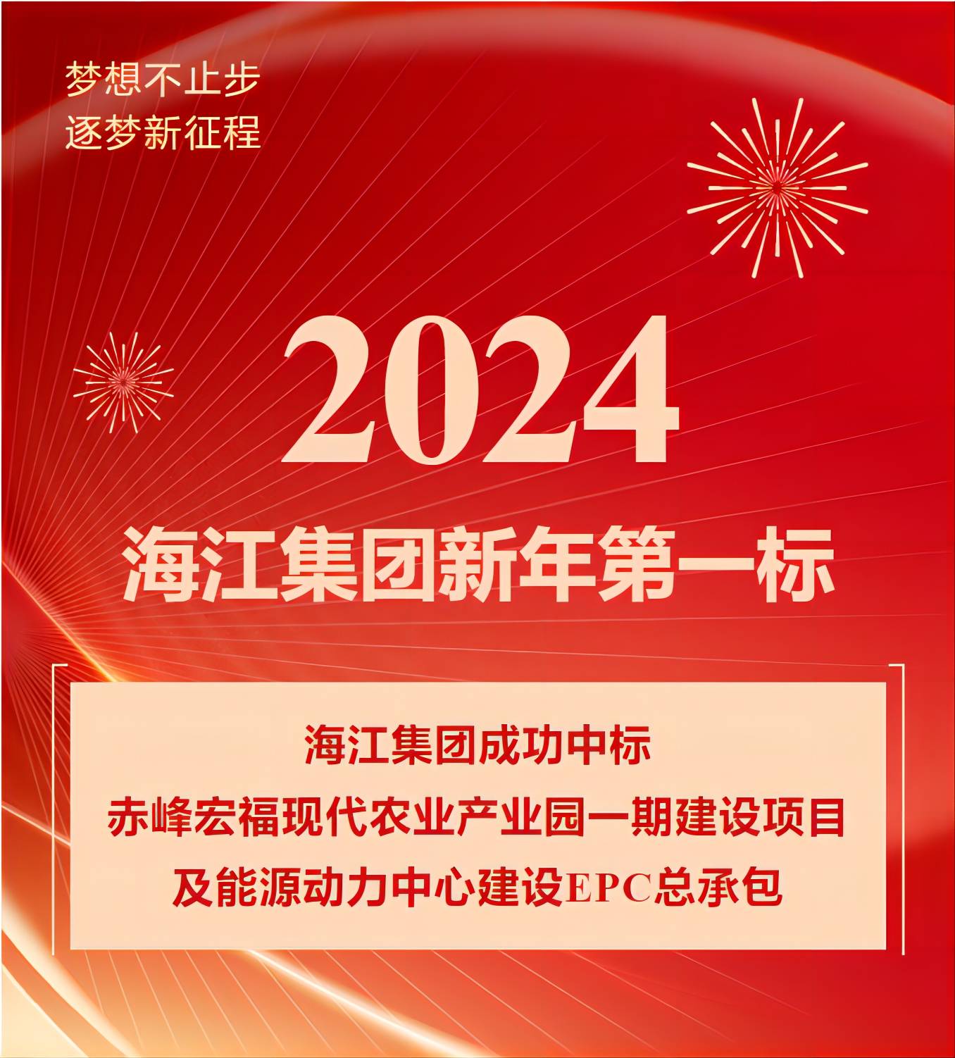 ? ? ? ?Good news, the first mark of the New Year. Recently, Haijiang Group successfully won the EPC general contract of Chifeng Hongfu Modern Agricultural Industrial Park Phase I construction project and energy power center construction. This is also following last year's Hohhot Hongfu modern agricultural Industrial Park project after the second bid. Haijiang intelligence and Haijiang speed, with a solid reputation, condensed into a wonderful poem for green mountains!
