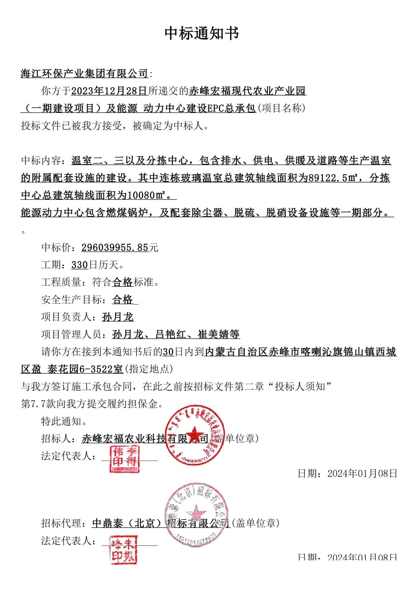 ? ? ? ?Haijiang Environmental Protection Industry Group won the first phase of the construction project of Chifeng Hongfu Modern Agricultural Industrial Park, with a winning amount of more than 290 million yuan and a total project duration of 330 days.