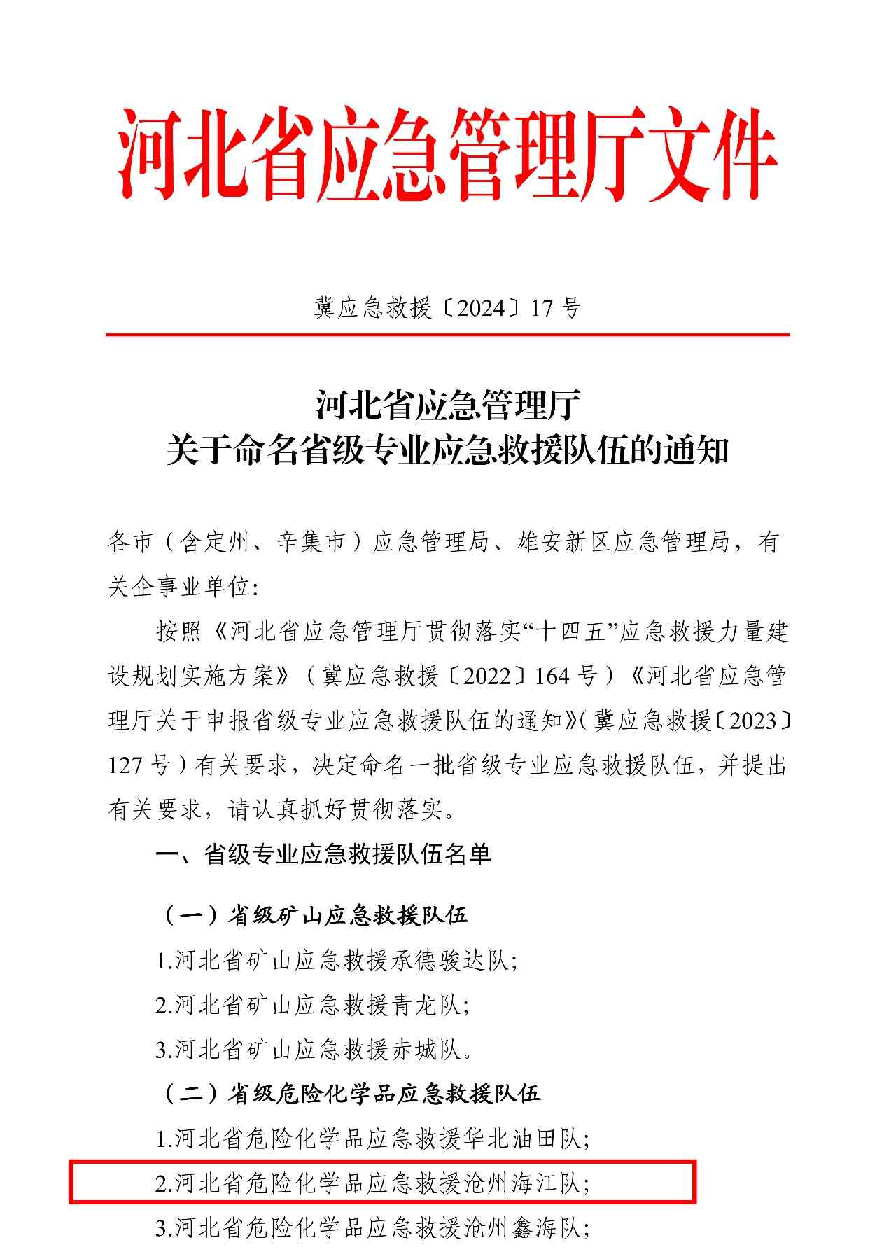 ? ? Recently, in accordance with the relevant requirements of the "Hebei Emergency Management Department to implement the" 14th Five-Year Plan "emergency rescue force construction Planning Implementation Plan" (Hebei Emergency Rescue [2022] No. 164), Hebei Emergency Rescue Department decided to name a group of provincial professional emergency rescue teams.