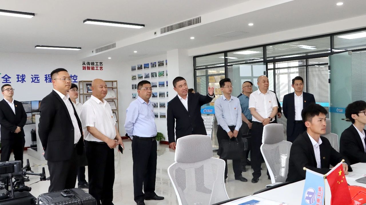 ? ? ??On the same day, Li Chengbei, Secretary of the Party Committee and chairman of Thirteen Chemical Construction, and his management team arrived at the circular economy industrial base of Haijiang Group, visited the 5G global remote command center of the park and carried out field survey of the park. Vice Chairman of Haijiang Group Chu Long, Haijiang Group executive Vice president, Party secretary Gao Qiying and other senior executives accompanied the whole process.