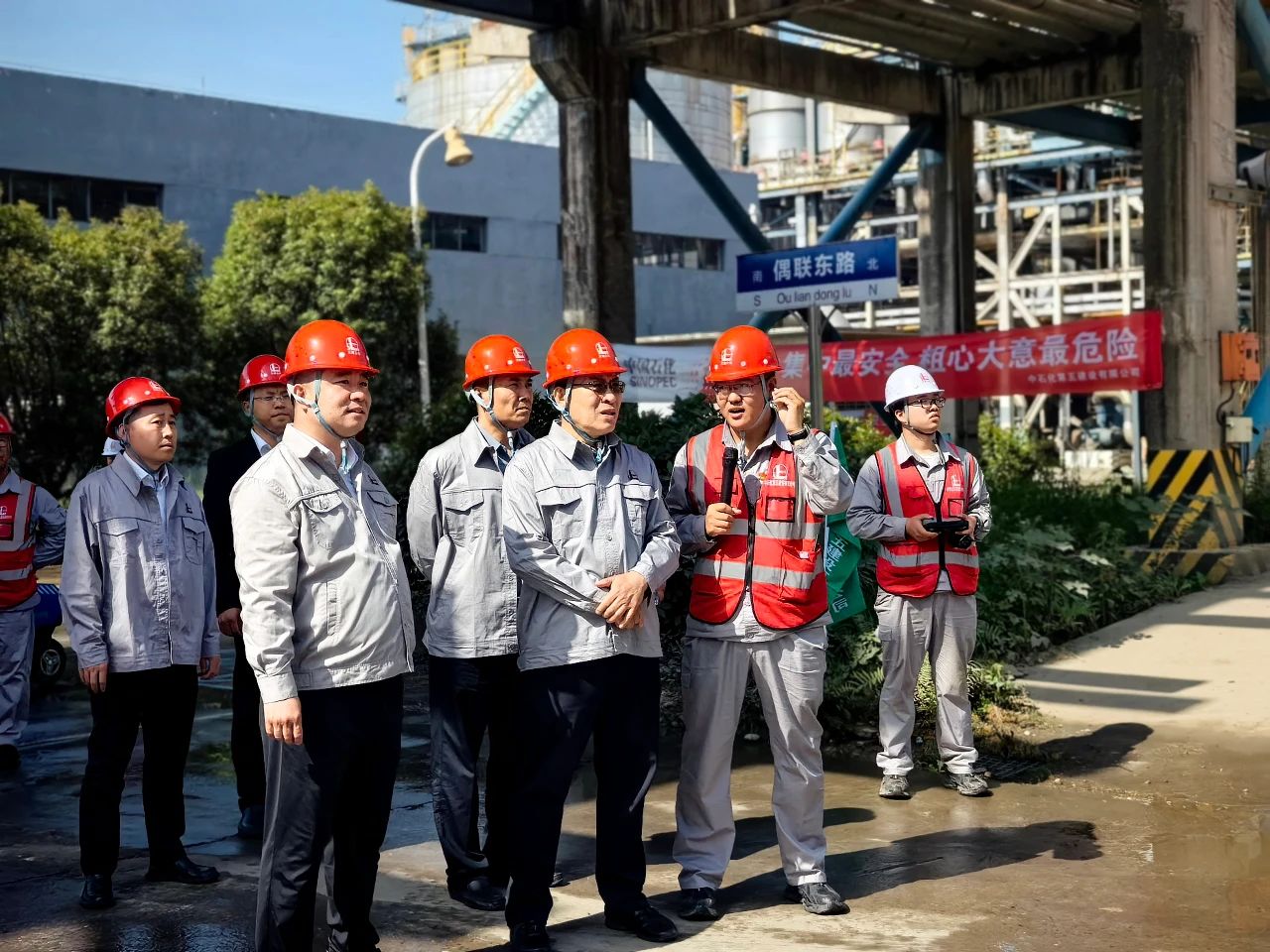 ? ? ? ?Hubei Zhijiang project site, intelligent equipment in full gear, the overall busy and orderly. Director Dong Yongsheng and his delegation first conducted a field survey of urea, synthetic ammonia and ethylene glycol plants, deeply understood the project's construction process, intelligent equipment, environmental protection measures and other aspects of the work, spoke highly of the project's safety control and efficiency improvement, and appreciated the technical strength and management level of Haijiang Group.