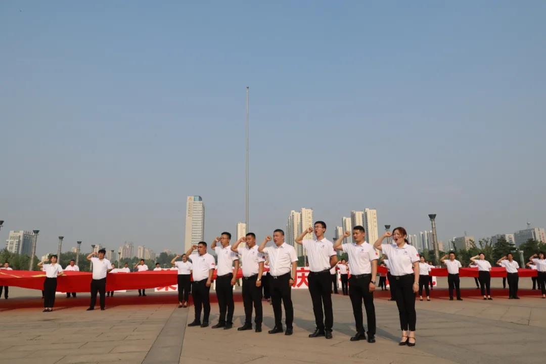 On June 25, Liu Haijiang, Chairman of Haijiang Group, and Gao Qiying, Secretary of Haijiang Group, led more than 100 members of the group to Cangzhou Shicheng Square.? Under the organization of the Party Branch of Haijiang Group, a large celebration was held to salute the centenary of the founding of the Party, to feel the red power and express patriotic feelings!