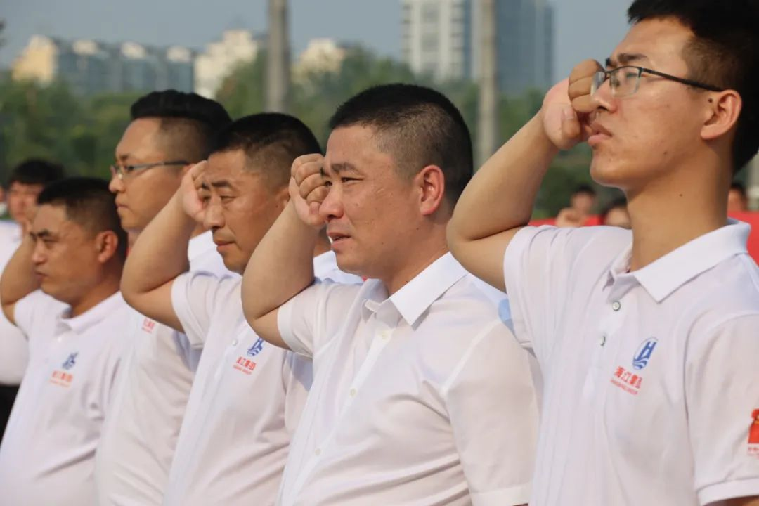 With the sound of powerful and orderly footsteps, the 100 people of Haijiang quickly formed up.?The party flag was guiding ahead, and the formation of the number "100" came out shockingly! "Carry forward the red spirit, do not forget the original mission." "The red flag will be passed on from generation to generation." With their sincere and loud voice, the people of Haijiang shouted out their passion and dreams, their responsibility and commitment, and their firm confidence and determination to "unswervingly listen to the Party and follow the Party"!