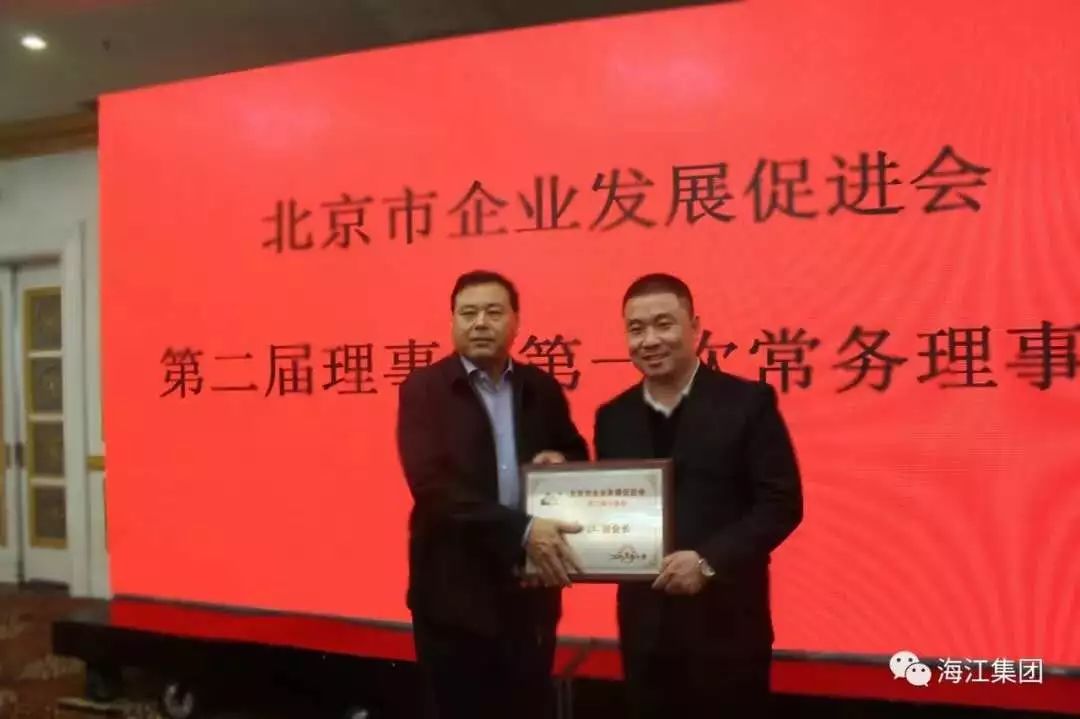 上圖為海江集團(tuán)董事長(zhǎng)劉海江當(dāng)選北京市企業(yè)發(fā)展促進(jìn)會(huì)副會(huì)長(zhǎng)
