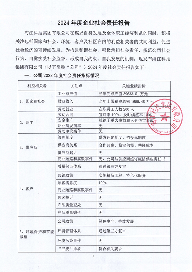 2024年度海江科技集團(tuán)有限公司溫室氣體排放報告
