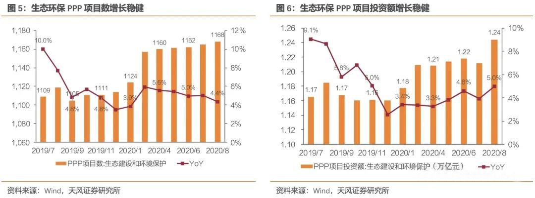 從中觀行業數據來看,景氣度抬升趨勢明晰,2020年暫受壓制。受疫情等方面因素影響,環保行業發展受到階段性壓制,固定資產投資增速轉負,PPP項目增長進程略有放緩。但從整體趨勢上看,行業層面修復十分明顯,固定資產投累計增速已從2月的-13.6%基本實現轉正,PPP項目方面,截至8月,生態環保PPP項目數為1168個,同比增加4.4%,投資額1.24萬億,同比增長5.0%。