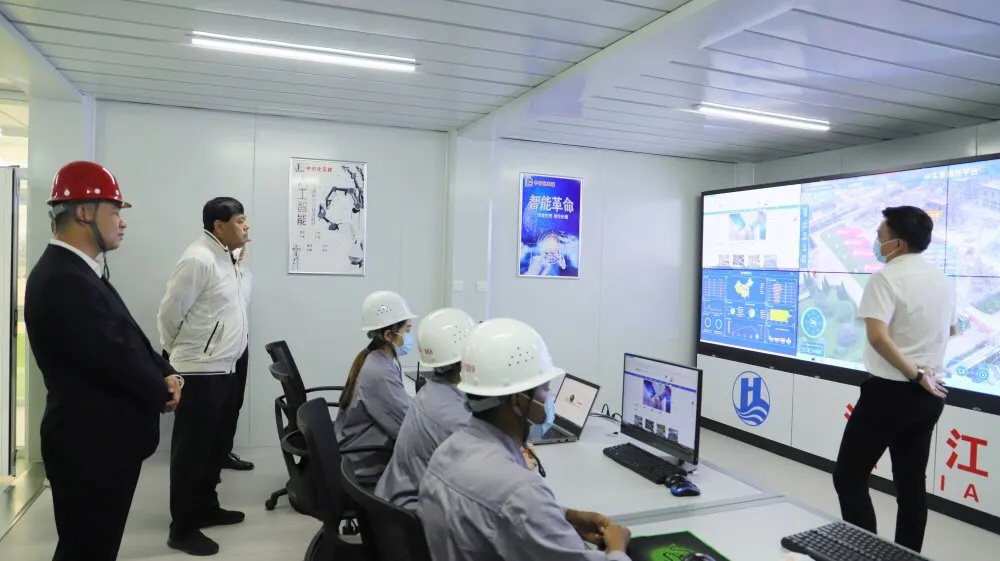 現場,海江集團董事長劉海江親自為黃會長講述了海江5G全球遠程操控技術。該技術是與華為深度合作,依托5G通信技術,由智能拆除延伸到智慧拆除,與遠端的控制室相連,實時控制位于拆除廠區內的無人挖掘機,同步回傳真實作業場景及全景視頻實況。在國內同行業中,率先運用此項技術,難度系數非常高。該項目不僅實現海江集團智能拆除體系中無人拆除目標并且有效規避了施工人員在高風險、不可控的環節下操控機械作業傳統拆除行業現象,也為未來中國智慧無人工地的實現提供了無限可能。可以想象,在不久的將來,操作員可以足不出戶的實時操控百里甚至千里之外的挖掘機,不受時間、氣候、環境的影響,大大的提高了工程進度、規避了施工風險!