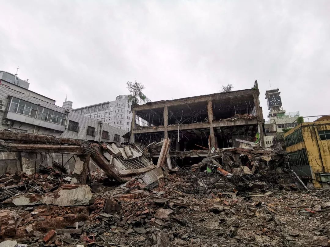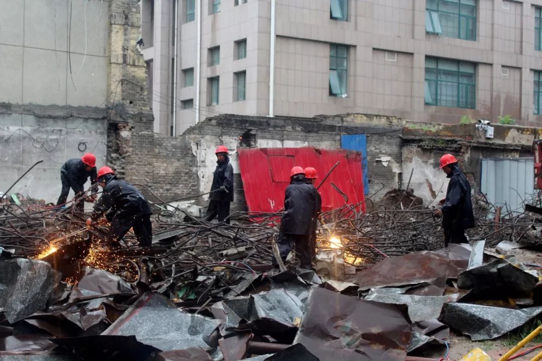 ? ? 8月11日下午5時,渤海大廈南側樓順利完成拆除作業。此次作業,樓與樓之間間隙小,施工作業面窄、作業難度大,海江集團經多方論證,采用最新智能液壓剪配合新工藝載荷式移位定向放倒,順利解決了所面臨的難題。