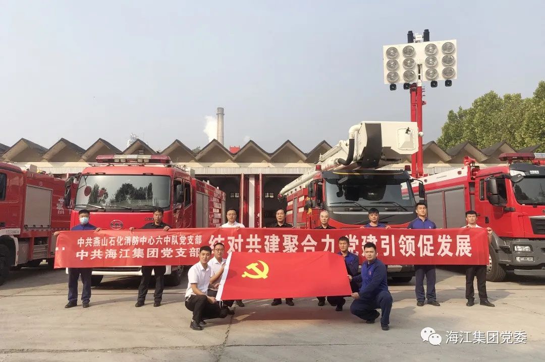 為堅持和加強黨的全面領導,深化探索黨建工作,尋求應急救援新突破,實現“組織建設互促、黨員干部互動、黨建成果互用”,9月30日,海江集團黨支部和燕山石化消防中心六中隊黨支部舉行結對共建協議簽約儀式。燕山石化消防中心黨委書記黃勇雄、六中隊黨支部書記孫玉生、組織委員閆繼光、宣傳委員武長松,海江集團黨支部書記高琪鎣、智能裝備大隊副隊長王碩、應急救援大隊組長唐忠志等黨員骨干共同出席簽約儀式。